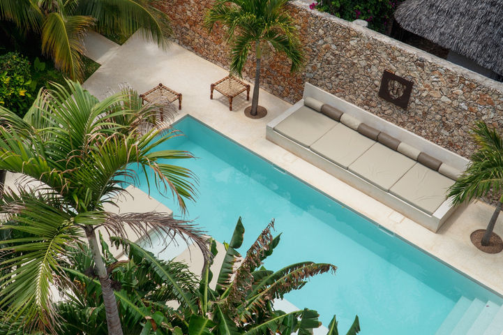 Frangipani penthouse sits on the third floor and offers lovely views over Watamu. Enjoy complete privacy as you watch stunning sunsets from the elegant terrace, with a unique vantage point overlooking the lush tropical garden and beautifully designed swimming pool below.